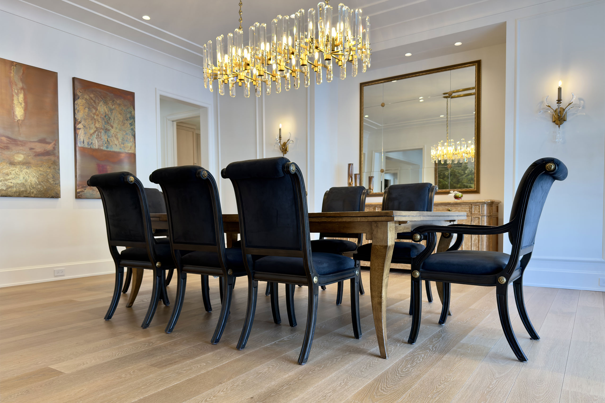 For this Northfield home on Chicago’s North Shore, the hardwood flooring was an essential part of establishing the home’s overall tone—clean, classic, and quietly luxurious. A wide plank, high-end French white oak engineered floor was selected to bring warmth, softness, and timeless character throughout the residence.