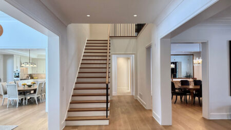 Installed throughout the house, the wide plank floor creates a sense of continuity, elegance, and understated sophistication—serving as a foundation for the home’s architecture, furnishings, and daily living.